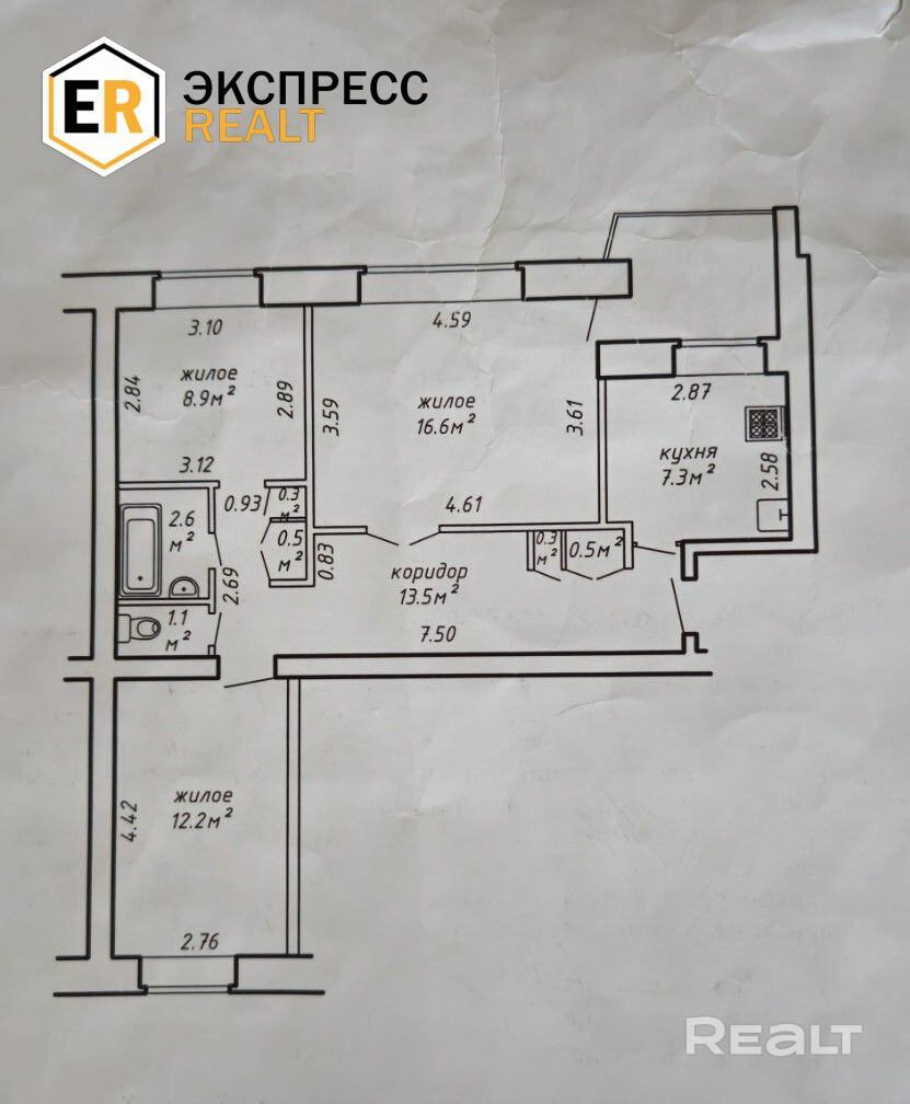 Купить 3-комнатную квартиру, г. Брест, б-р Космонавтов