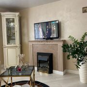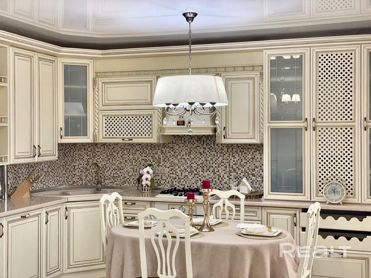 На стенах выполнена декоративная штукатурка, полы - итальянская плитка и ламинат. Мебель и межкомнатные двери изготовлены из массива дерева. Установлена бытовая техника Bosch, LG, Samsung, немецкая сантехника, европейские светильники, шторы отшивались на заказ из натуральных тканей. Есть возможность регулировать температуру воздуха, установлен котел. Полы на кухне, лоджии, ванной и сан.уз с подогревом.