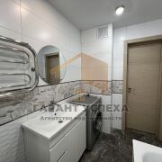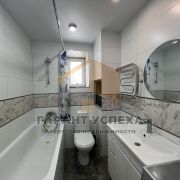 Санузел облицован современной керамической плиткой, заменена сантехника, полотенцесушитель, акриловая ванна.
