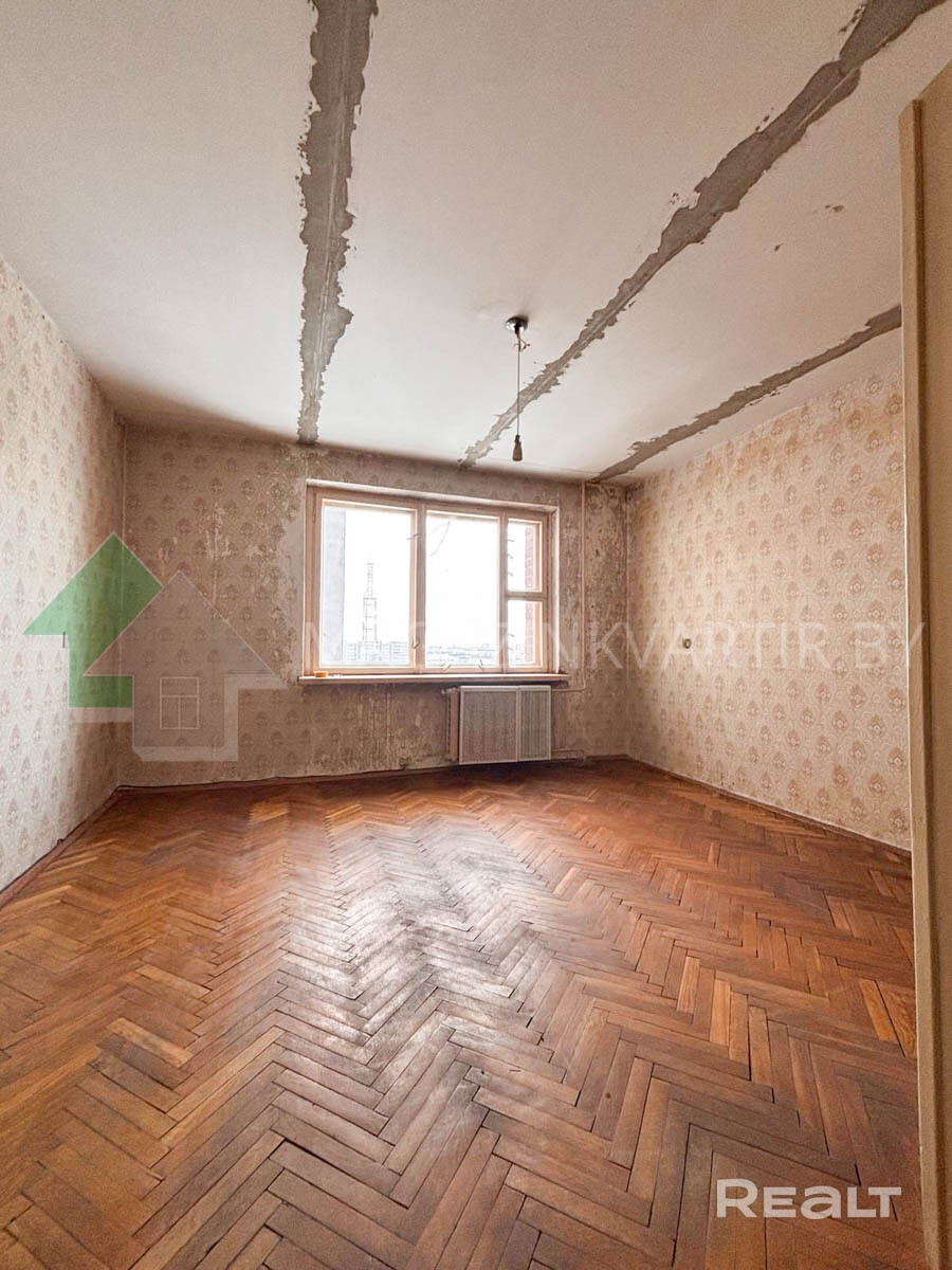 Квартира готова к ремонту: вывезена вся мебель, окна деревянные, полы паркет и линолеум.