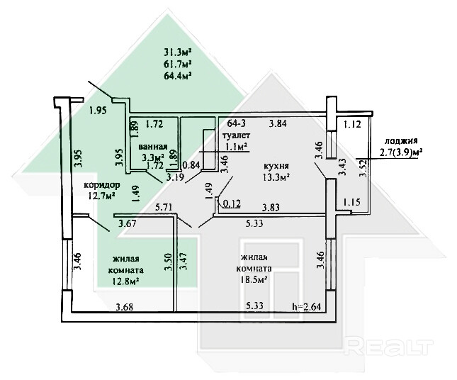 64.4 м²