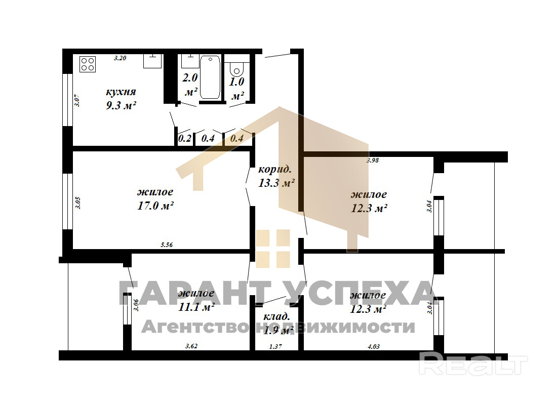 ЧУП «Гарант успеха», УНП 290472700, лицензия № 02240/137 от 20.10.2006 г., договор на оказание риэлтерских услуг №17/1 от 14.01.2026 г.