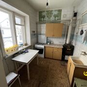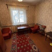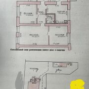 Квартира с отдельным входом и огороженным участком в одноэтажном доме из кирпича, построенном в 1973 году. Перекрытия из железобетонных плит. Крыша накрыта шифером. В квартиру имеется два входа, 3 комнаты, просторная кухня, ванна, кладовая. Имеется погреб. На полу деревянная доска, стены оклеены обоями. Высокие потолки 2,87 м. В доме газовое отопление, местная канализация, вода подается насосом из колодца. Центральное водоснабжение и канализация проходит в паре метров. Во дворе имеется сарай, хозпостройки и колодец. В квартире никто не живет, но зимой отапливается.