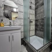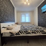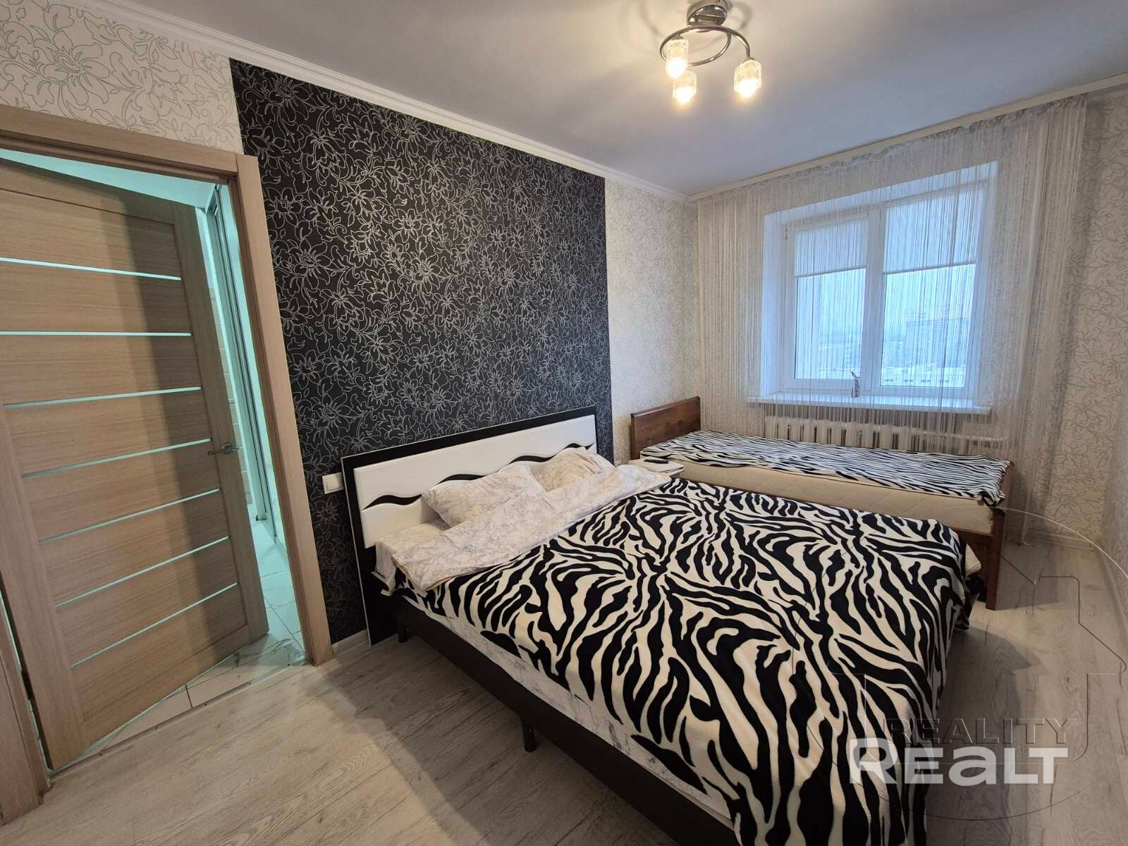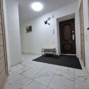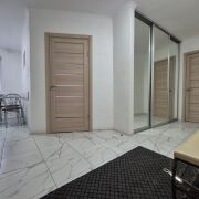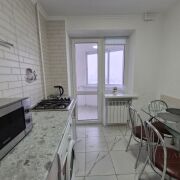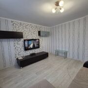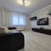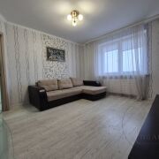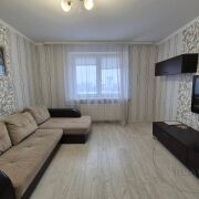 Квартира с современным ремонтом : окна ПВХ, полы ламинат/плитка, потолки снежка, стены оклеены обоями/декоративная отделка повышенной прочности с полимерным покрытием, входная дверь металлическая, межкомнатные двери МДФ. Санузел облицован современной плиткой.