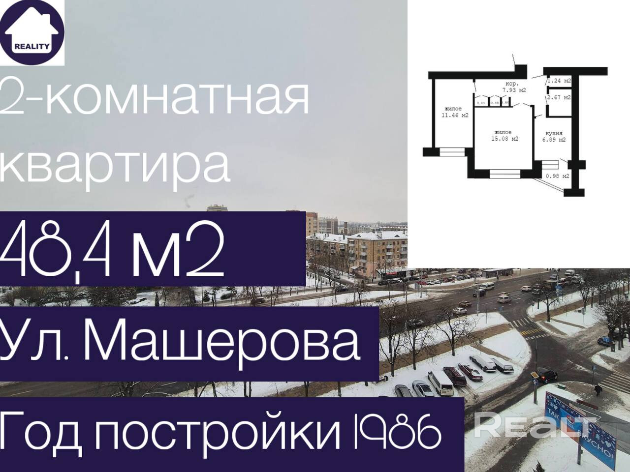 Предлагаем купить 2 -х комнатную квартиру в центральной части города по ул. Машерова 8/9 -этажного кирпичного дома 1986 г. п. с раздельным санузлом. Общая площадь по СНБ 48,4 кв. м., общая 47,4 кв. м., жилая 26,5 кв. м., кухня 7,0 кв. м. Окна квартиры выходят на улицу Машерова.