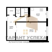 Площадь - 38,1 м2, кухня - 7,4 м2.