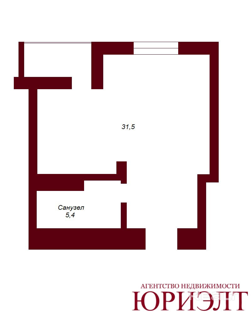 - Санузел: 5,4 м2