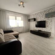 В квартире выполнен капитальный ремонт с заменой всего инженерного оборудования: новая электрическая проводка с выводом счетчика в квартиру, современная сантехника, окна ПВХ и новые межкомнатные двери. Полы отделаны плиткой и ламинатом на стяжке, стены оформлены обоями и декоративной отделкой повышенной прочности с полимерным покрытием, а потолки выполнены в технике снежка. Входная дверь - металлическая.