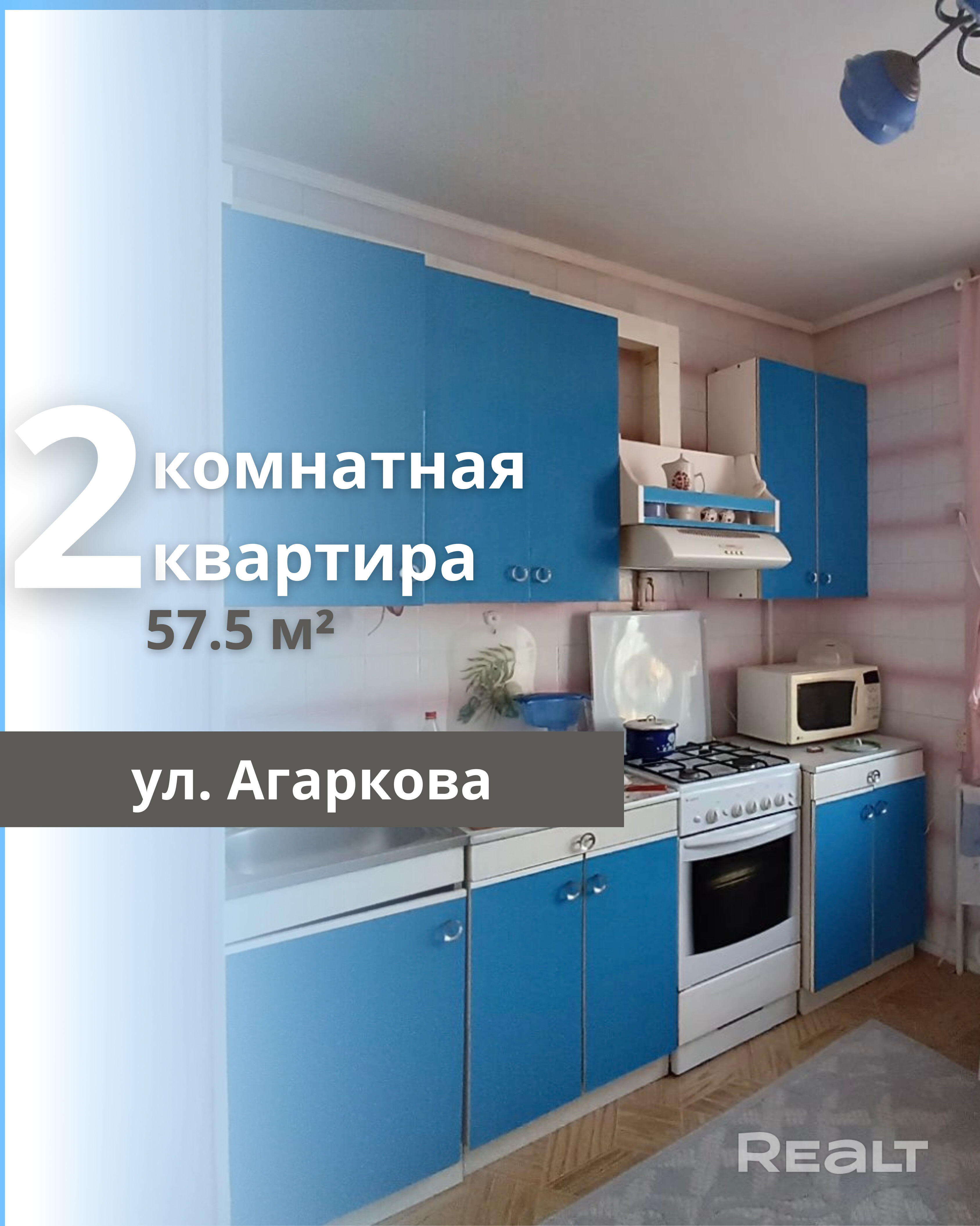 Продается 2-комнатная квартира в пригороде Бреста, в агрогородке Клейники по улице Агаркова. Удобное расположение — всего 15 минут до центра Бреста, регулярно курсируют маршрутка № 20 и автобус № 22. Квартира находится на 4 этаже кирпичного дома 1990 года постройки, который состоит из 4 этажей. Общая площадь квартиры составляет 57,5 квадратных метров, жилая площадь — 30,4 квадратных метра, кухня — 9 квадратных метров. В квартире поддерживается жилое состояние, также прилагается подвал.