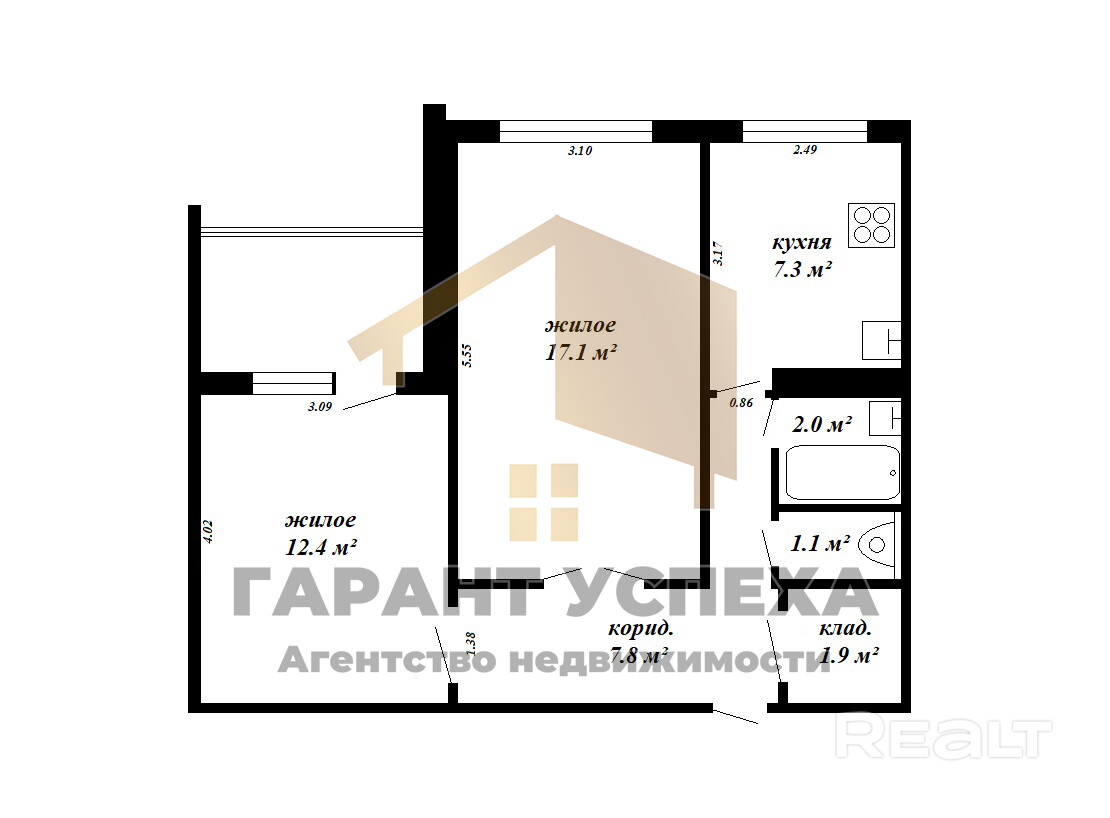 ЧУП «Гарант успеха», УНП 290472700, лицензия № 02240/137 от 20.10.2006 г., договор на оказание риэлтерских услуг №38/1 от 23.01.2026 г.