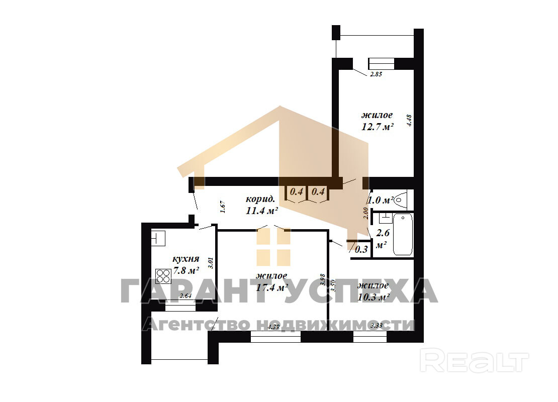ЧУП «Гарант успеха», УНП 290472700, лицензия №02240/137 от 20.10.2006 г., договор на оказание риэлтерских услуг №42/1 от 26.01.2026 г.