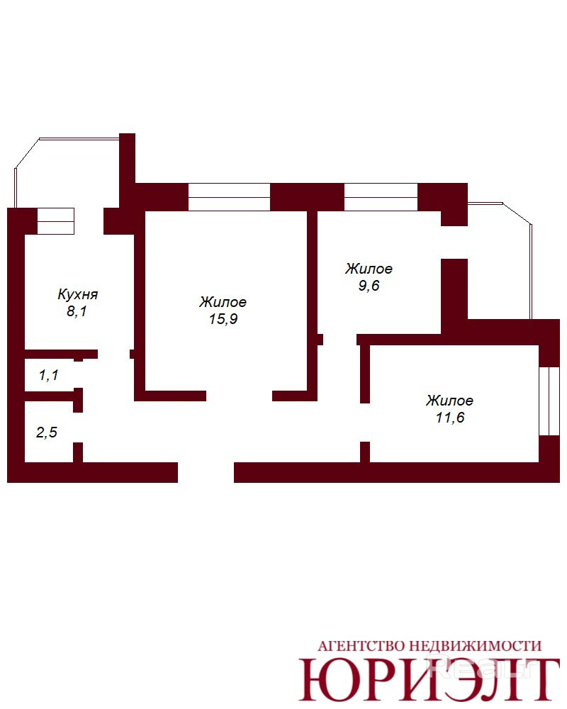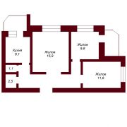 Три отдельные комнаты, кухня, раздельный санузел.