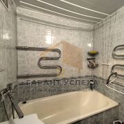 В квартире установлены стеклопакеты ПВХ. Двойная входная дверь, межкомнатные двери деревянные. Потолки частично натяжные, навесные и окрашены. Напольное покрытие линолеум и ламинат. Стены оклеены обоями. Санузел раздельный, облицован плиткой.