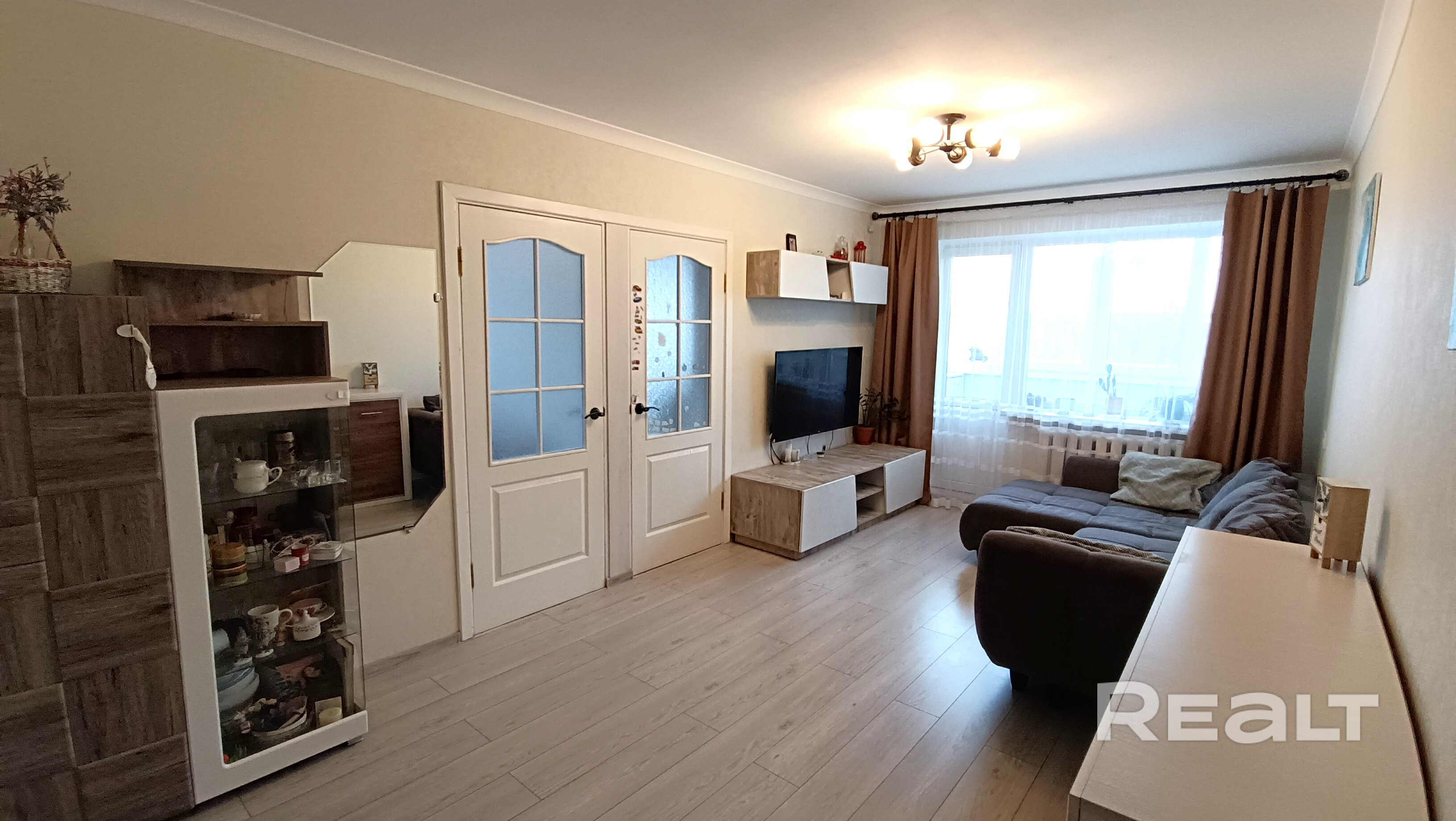 В квартире выполнен хороший ремонт. Окна стеклопакеты ПВХ, стены обклеены обоями, межкомнатные двери МДФ, входная – металлическая, полы – ламинат (комнаты)/плитка, потолки – снежка, в санузле плитка современного образца.