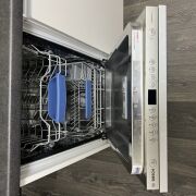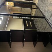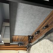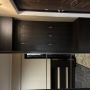Квартира расположена в самом центре города и выполнена с качественным современным ремонтом. Все делалось для себя — продуманно, надежно и с расчетом на долгие годы эксплуатации. Использованы качественные материалы, установлена проверенная техника европейских брендов, мебель изготовлена под заказ, в спальне — кованая мебель.