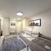 Квартира с ремонтом хорошей планировки, просторная комната площадью 18.6 м2 с нишей, которую можно зонировать, кухня - 5.9 м2, совмещенный санузел облицован современной плиткой, стены оклеены обоями, потолки окрашены, на полу - ламинат, в комнате крашеная доска.
