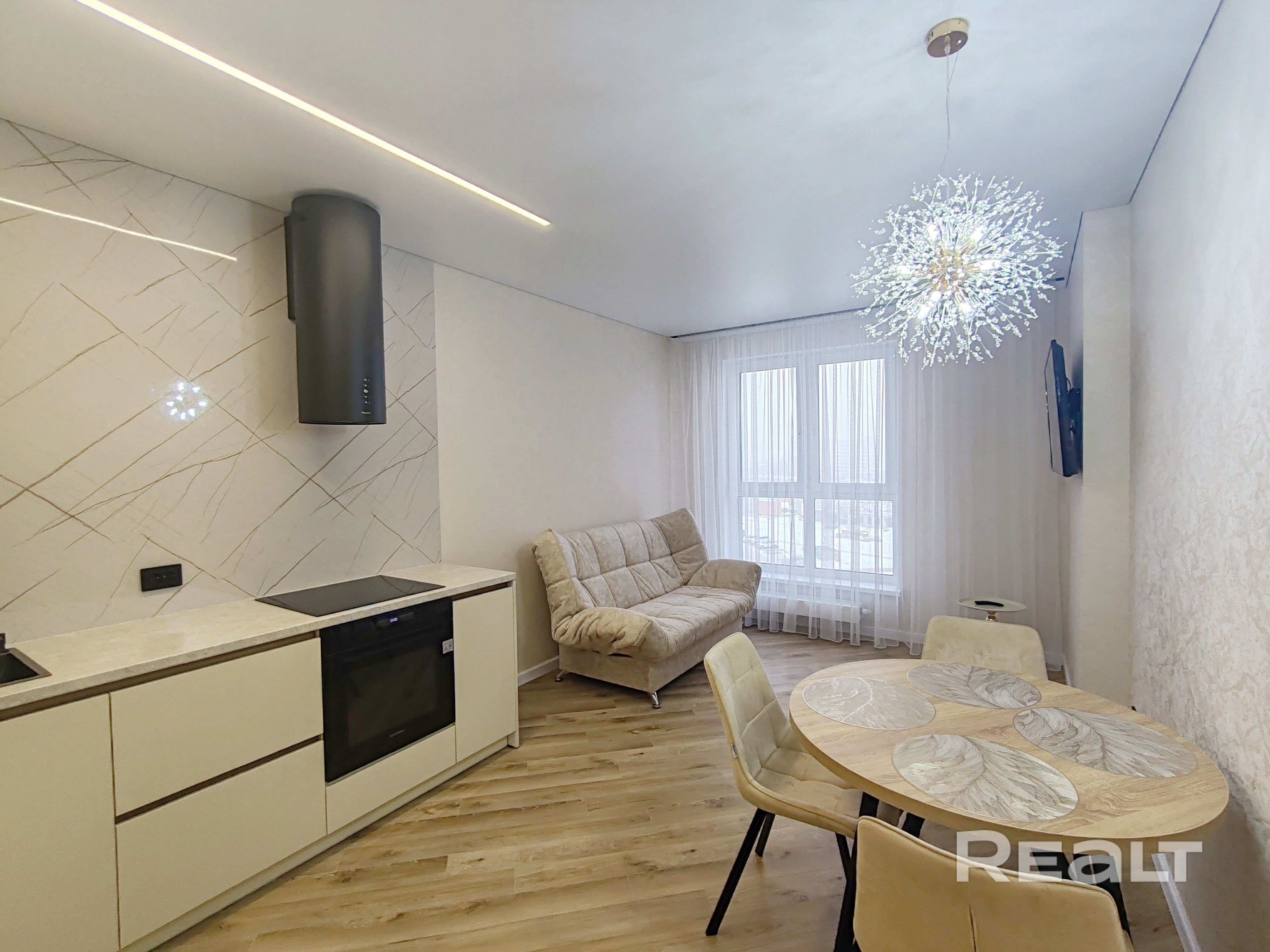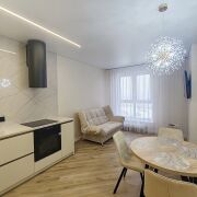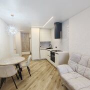 Двухкомнатная квартира на шестом этаже 10-этажного кирпичного дома 2024 года постройки. Общая площадь 43,8 кв.м. Удобная планировка открытого типа: жилое помещение с кухонным оборудованием 41,2 кв.м - изолированная спальня 11,1 кв.м. Современный ремонт реализован при помощи качественных материалов, дизайнерский подход оформленный в монохромной цветовой палитре. Для отделки выбраны фирменные материалы: полы - ламинат и плитка, потолки оснащены разноплановой подсветкой над приоритетными зонами. В санузле - современная плитка, , проточный водонагреватель Thermex. Квартира обставлена встроенной и корпусной мебелью. Кухонный гарнитур с фурнитурой Blum, функциональная техника: варочная поверхность, вытяжка, духовой шкаф MAUNFELD, встраиваемый холодильник. Cистема видеонаблюдения в подъезде и вокруг дома. На площадке имеется закрытое место для колясок, грузопассажирский лифт. Во дворе имеются закрытая игровая детская площадка, парковка для автомобилей.