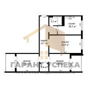Классическая планировка продумана до мелочей: две спальни в конце коридора расположены напротив друг друга, из них есть выход на застеклённые лоджии. Совмещенный санузел и вместительный коридор.