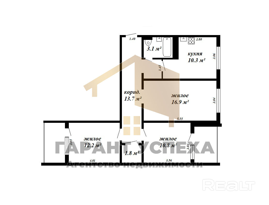 ЧУП «Гарант успеха», УНП 290472700, лицензия № 02240/137 от 20.10.2006 г., договор на оказание риэлтерских услуг №79/1 от 09.02.2026 г.