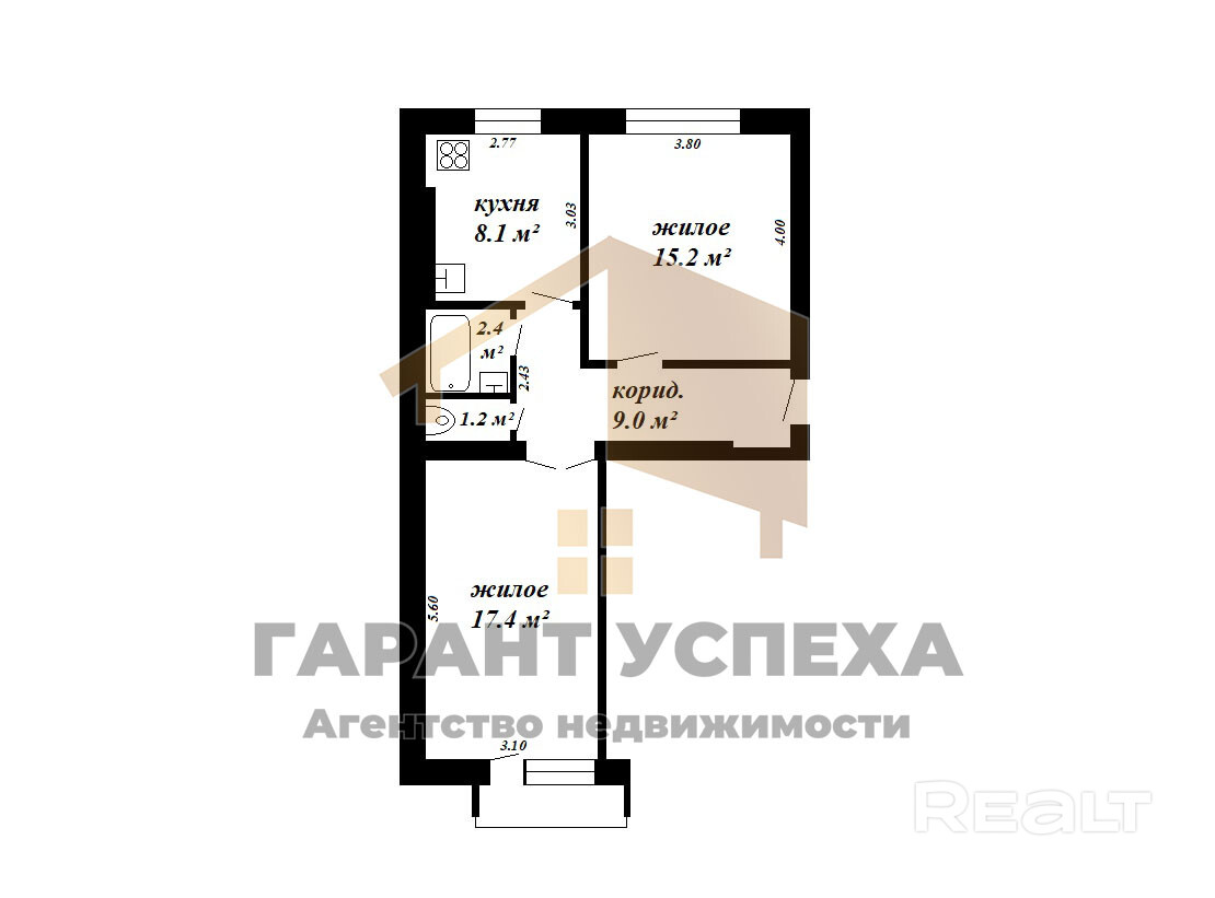 ЧУП «Гарант успеха», УНП 290472700, лицензия № 02240/137 от 20.10.2006 г., договор на оказание риэлтерских услуг №83/1 от 10.02.2026 г.