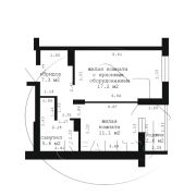 Общая площадь по СНБ 43,8 кв. м., общая 41,2 кв. м., жилая 11,1 кв.м., кухня 17,2 кв. м.