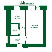 Общая площадь квартиры составляет 26,5 м2, жилая 15,5 м2, кухня 5,29 м2.