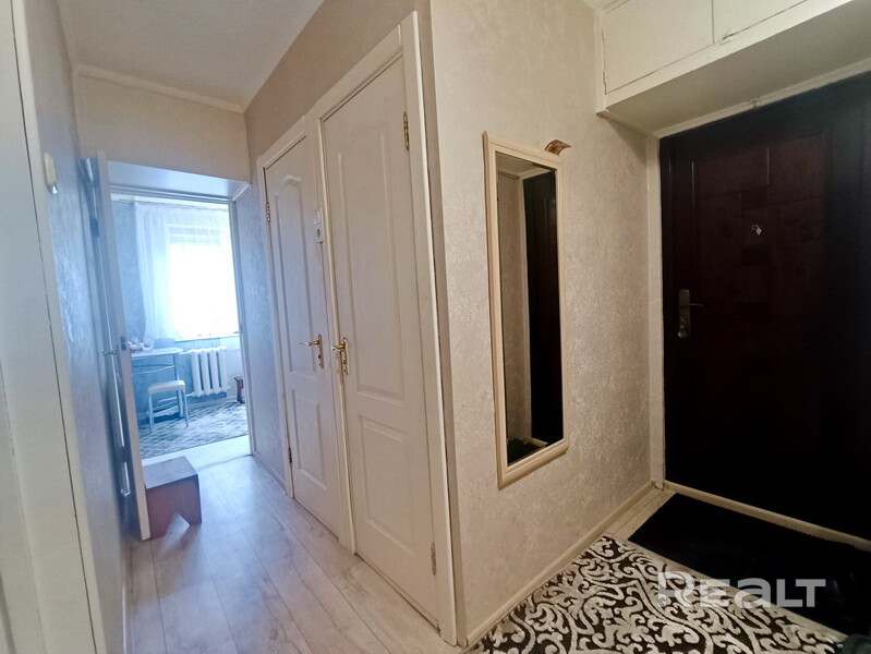 2-х комнатная квартира, г.Брест, Московская ул. 1971 г.п., 1/5 панельного, общая площадь 50,7 м2, жилая 34,5, две просторные комнаты 17,2 м2 и 17,3 м2 выходят на разные стороны, кухня 5,4 м2, есть балкон и подвальное помещение. Квартира в отличном жилом состоянии, установлены стеклопакеты, потолок окрашен снежкой, межкомнатные двери современные, входная дверь металлическая. Проводилась замена труб и сантехники, современная плитка в санузлах. При продаже остается кухонный гарнитур. Чистый и аккуратный подъезд. Хорошее место расположение, присутствуют торговые, деловые, культурно - развлекательные объекты города. В шаговой доступности детские садики, школа, аптеки, парк Воинов Интернационалистов. Отличное транспортное сообщение, рядом несколько остановок общественного транспорта.