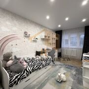 В квартире выполнен современный ремонт: стены оклеены светлыми фактурными обоями, потолки натяжные со встроенными точечными светильниками, пол в комнатах — ламинат, в гостиной уложен классический паркет «ёлочкой» в отличном состоянии.