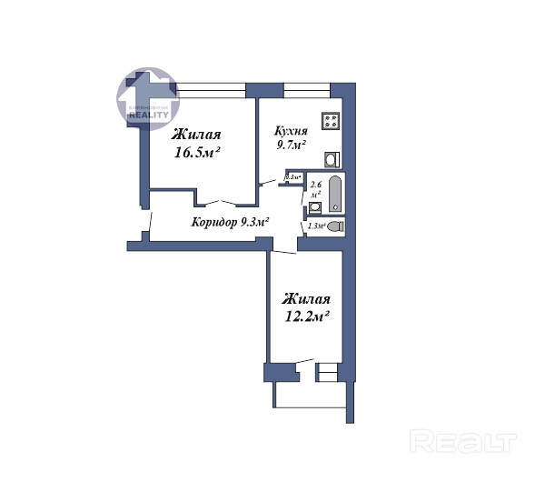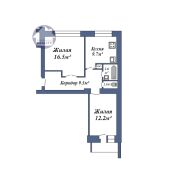 - Две жилые комнаты площадью – 16.5 кв.м. и 12.2 кв.м.;