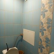 Квартира обладает большой кухней с новым современным ремонтом площадью 9,4 м2 и раздельным санузлом, где уже заменена сантехника. Потолки оформлены снежкой, стены обклеены обоями, а полы в комнатах покрыты ламинатом, на кухне - плиткой. Окна выполнены из ПВХ, а входная дверь - металлическая.