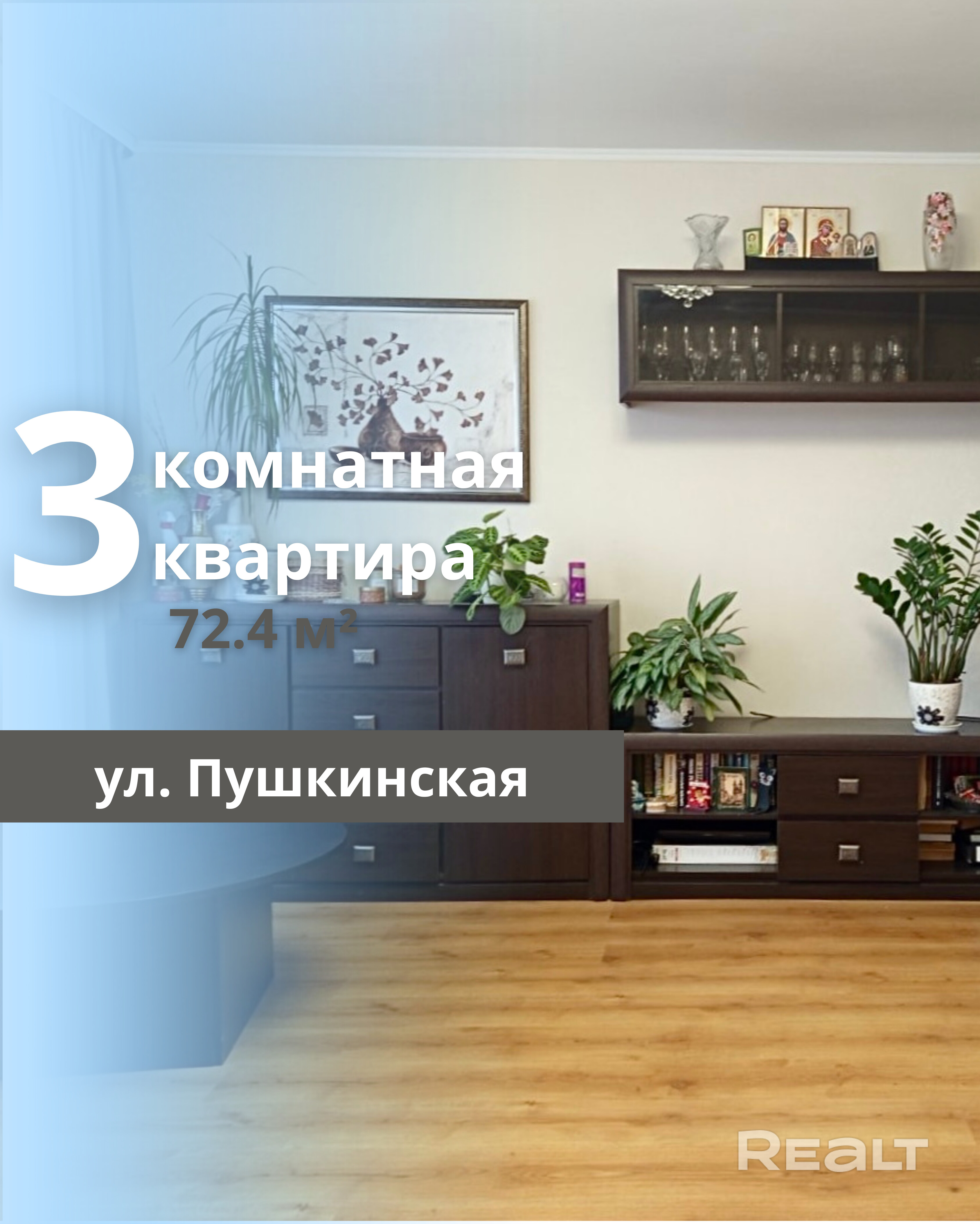 Продается уютная и светлая трехкомнатная квартира по ул. Пушкинская в центре Бреста, построенная в 1988 году. Общая площадь квартиры составляет 72,4 м2, она расположена на 9 этаже из 9, что обеспечивает тишину, красивый вид и доступ к техническому этажу.