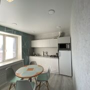 В квартире сделан капитальный ремонт в 2022 году. Установлены современные стеклопакеты ПВХ. Напольное покрытие – ламинат, керамическая плитка. Потолок: спальня гипсокартон, кухня, зал, коридор, санузел, ванна – натяжной потолок с точечными энергосберегающими светильниками. Стены выровнены и оклеены качественными немецкими обоями. Произведена шумоизоляция стены со смежной квартирой. Установлена новая входная, межкомнатные двери. Санузел раздельный. Заменены трубы, установлена новая сантехника. Лоджия застекленная и утепленная, пол - ламинат, стены - декоративная штукатурка, потолок – панели с точечными светом. На балконе установлен шкаф для хранения вещей. Во всей квартире установлены новые розетки. Два кондиционера. Окна выходят на две стороны, спальня - тихий двор; кухня, зал - улица.
