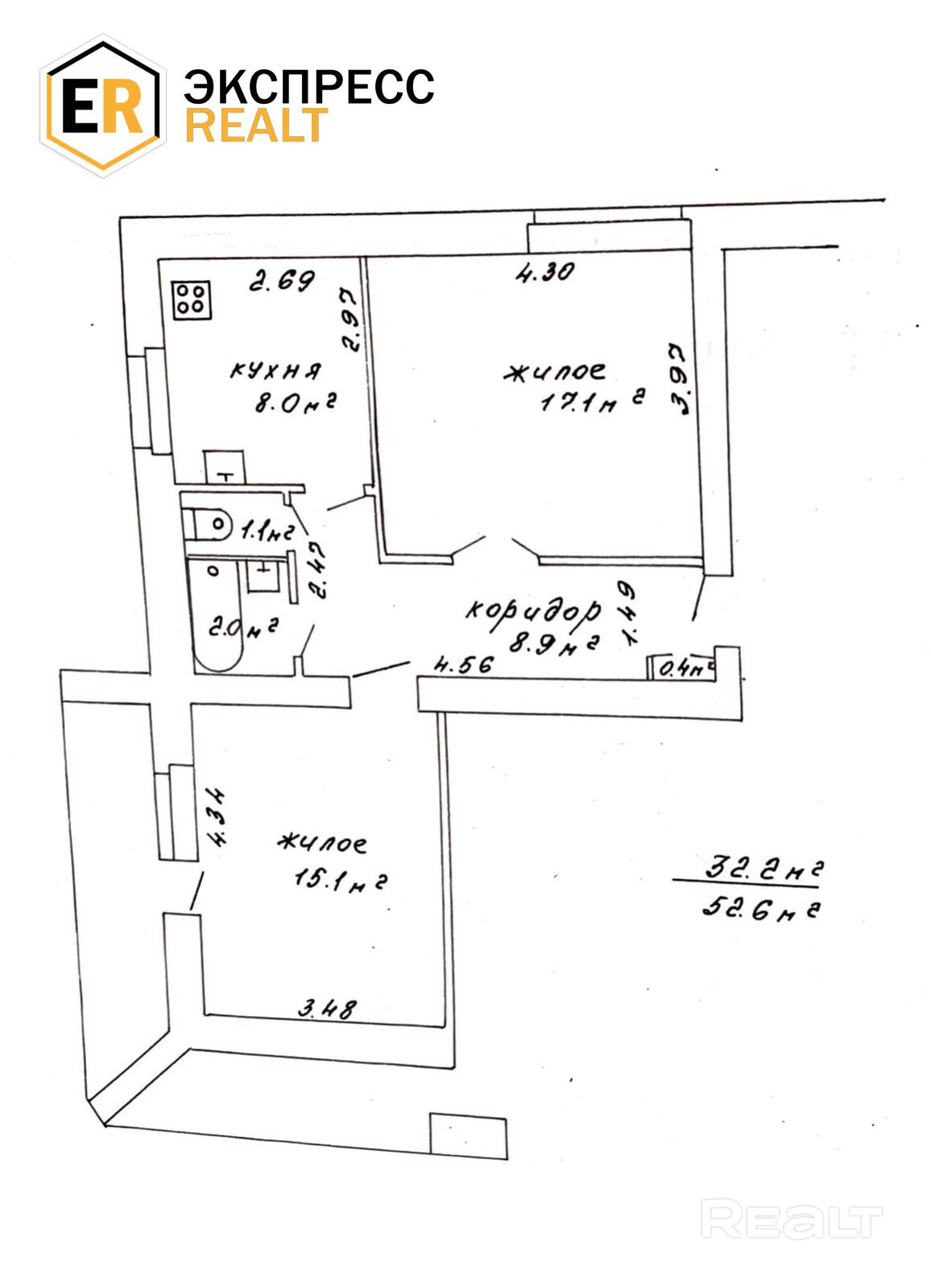 52.6 м²