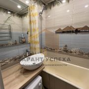 Санузел облицован современной керамической плиткой, заменена сантехника, полотенцесушитель. Проведена новая электропроводка.