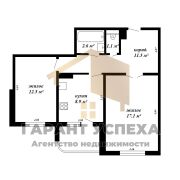 Общая площадь квартиры составляет 53, м2 (по СНБ - 55,6 м2), жилая - 29,6 м2, кухня - 8,9 м2. Санузел раздельный. Просторная застекленная лоджия с выходом из кухни.