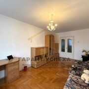В квартире выполнен ремонт. Напольное покрытие – паркет, керамическая плитка на кухне. Стены выровнены и оклеены обоями. Потолки окрашены снежкой. Входная дверь двойная: деревянная и металлическая. Межкомнатные двери МДФ. Установлены окна с профилем из ПВХ на кухне и в зале. Санузел раздельный, требует ремонта. Кладовая оборудована полками.