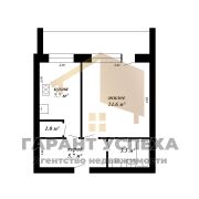 Общая площадь квартиры составляет 32.5 м2 (по СНБ - 35.7 м2), жилая - 14.6 м2, кухня - 7.7 м2. Санузел совмещённый - 3.5 м2.