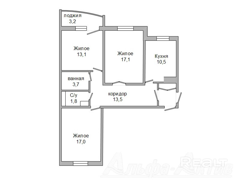 Трехкомнатная квартира, ГОБК ул. - 230317