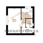 Общая площадь квартиры составляет 30.4 м2, жилая - 16.4 м2, кухня - 6.1 м2. Санузел совмещённый.
