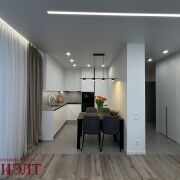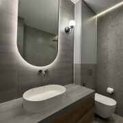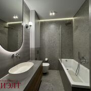 Кухня оснащена итальянским гарнитуром Stasa Cucine, фурнитурой Blum и встроенной техникой от ведущих производителей. Ванная комната оформлена керамогранитом, с инсталляцией для скрытия коммуникаций и тропическим душем. Установлена итальянская сантехника Paffoni.