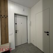 Межкомнатные двери скрытого монтажа визуально расширяют пространство. Входная дверь — металлическая.