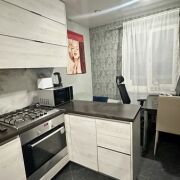 В квартире сделан ремонт с использованием отделочных материалов хорошего качества с индивидуальными дизайнерскими решениями.  Полы - ламинат, плитка; санузел облицован современной керамической плиткой, стены оклеены обоями.    Кухонный гарнитур с варочной поверхностью и шкаф-купе создают дополнительные удобства.  Самое сердце г. Бреста – микрорайон со старинной архитектурной застройкой в окружении уютных зеленых улочек, отдельные кварталы занесены в список историко-культурного наследия.  Рядом пешеходная улица Советская.