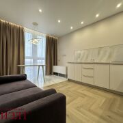 Квартира полностью укомплектована и готова к проживанию: остаётся вся встроенная мебель, бытовая техника, мягкая мебель, осветительные приборы, включая многоуровневую систему освещения, карнизы с подсветкой и встроенные шкафы.