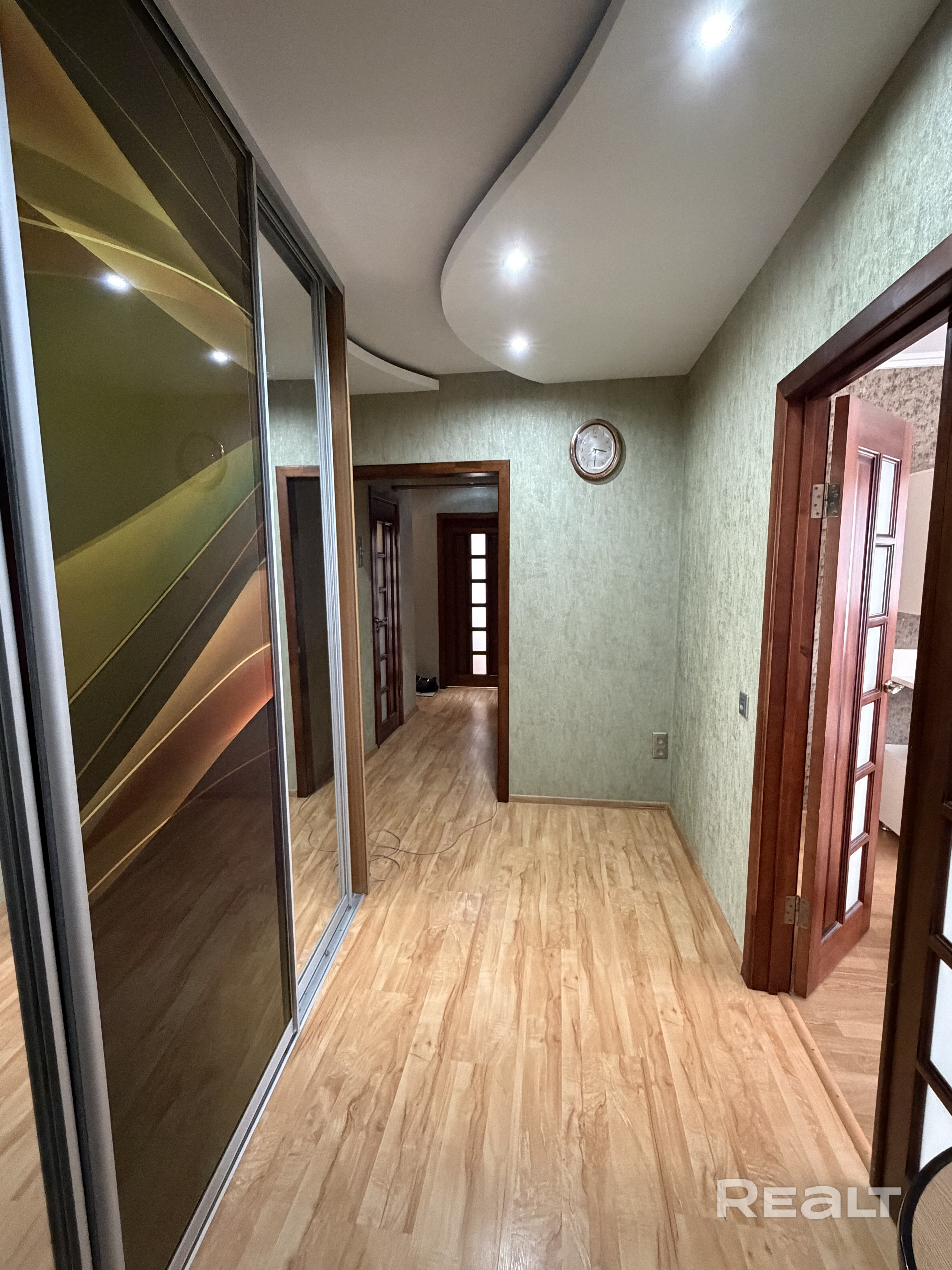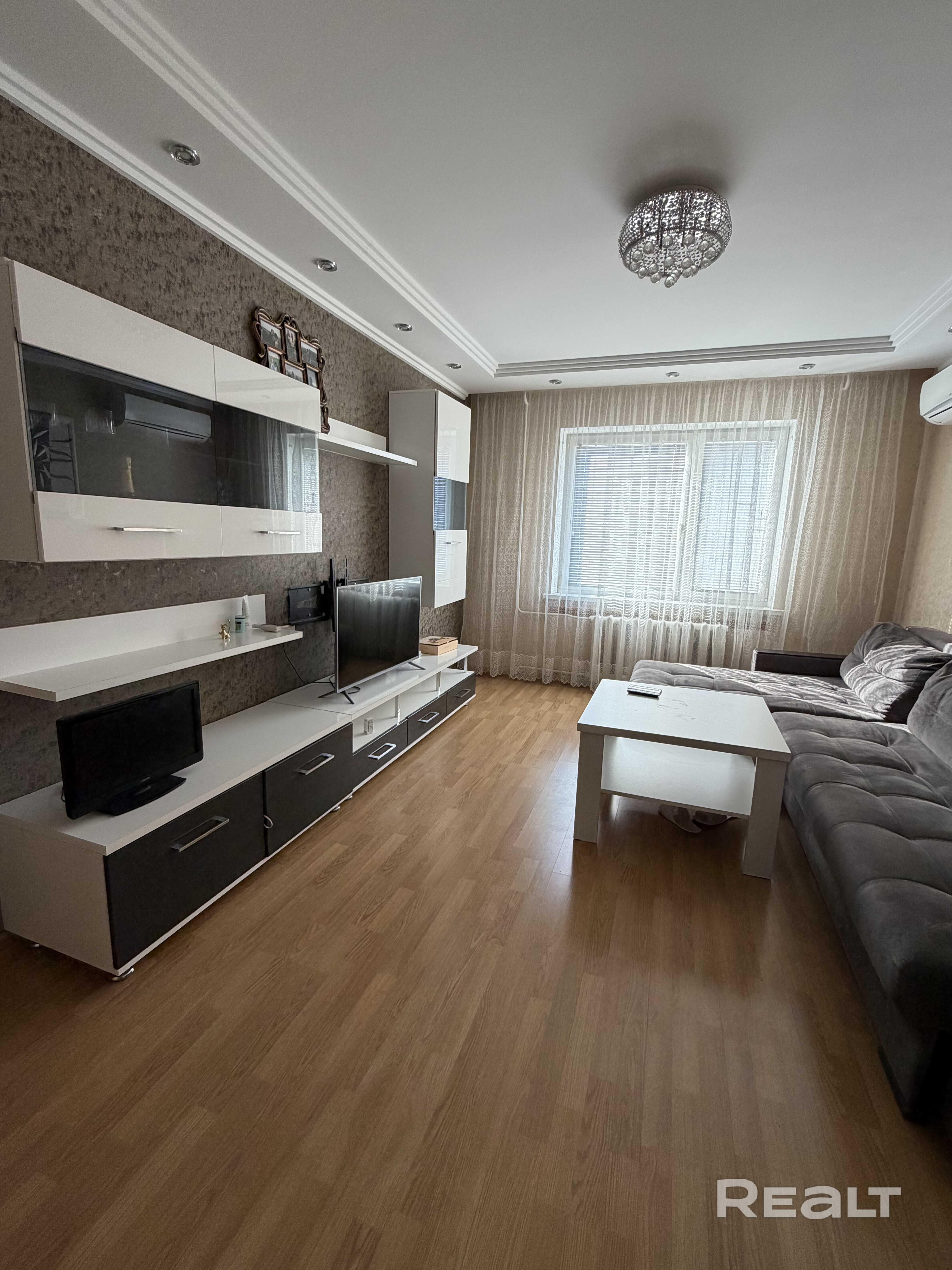 На полу лежит ламинат, обои импортные, потолок гипсокартон, в ванне и туалете хорошая плитка, ванна пр-во Италия, хорошая сантехника, вентиляция в ванне и туалете. В зале установлен кондиционер. В квартире заменена электрика, все розетки с заземлением. Дом находится вблизи от рынка Лагуна, Санта, Гребного канала, Додо Пицца, Копеечка, 25, 30, 35 школа рядом, несколько садов, один из них практически во дворе, вблизи расположены остановки общественного транспорта, 10 мин. до центра.