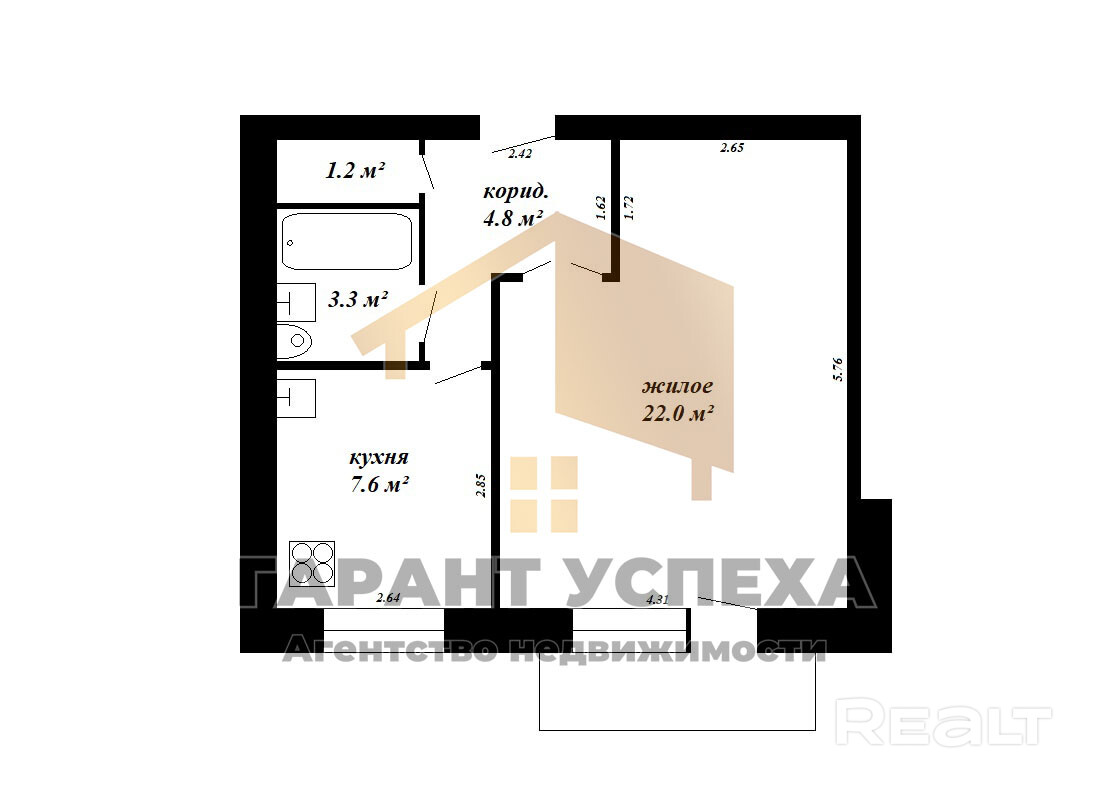 7.6 м²