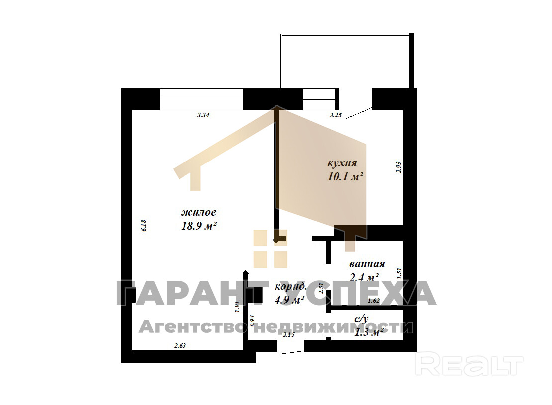 18.9 м²