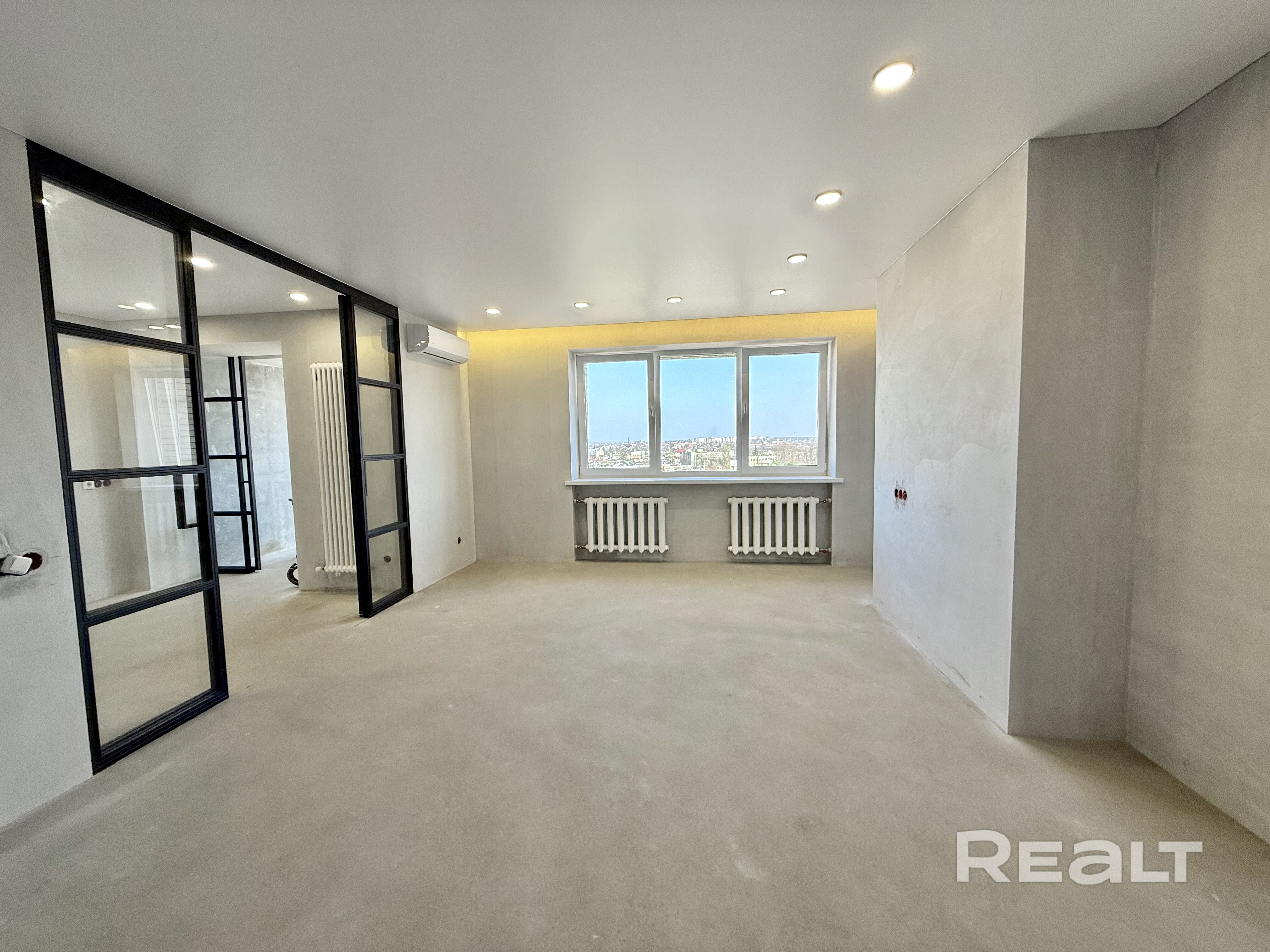 Выполнен капитальный ремонт квартиры под чистовую отделку с узаконенной планировкой. Все инженерные системы и планировочные решения, выполнены под готовый дизайн-проект! * входная дверь оснащена биометрическим умным замком с голосовым сопровождением * пластиковые окна * натяжные потолки * продуманная планировка — ниши под ТВ и шкафы * отдельное место в коридоре под стиральную и сушильную машины * кондиционер * вертикальный дизайнерский радиатор на кухне * бойлер Ariston