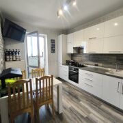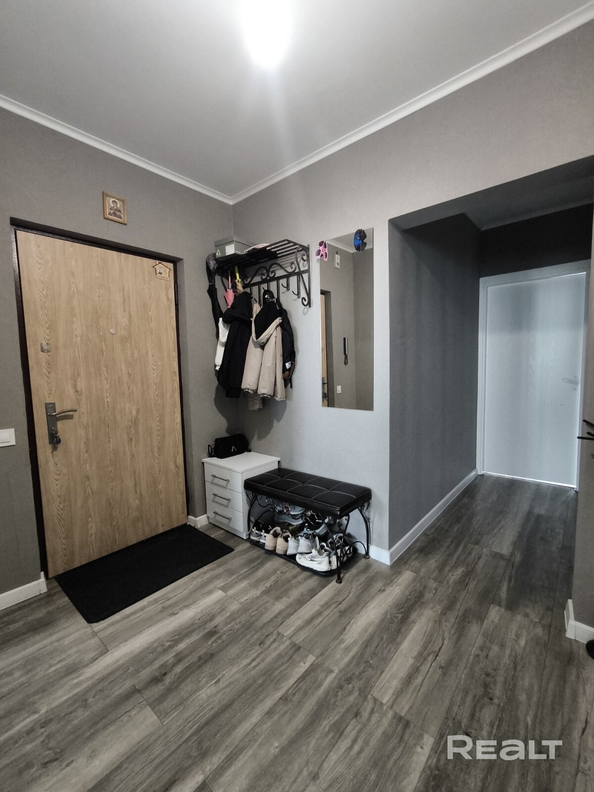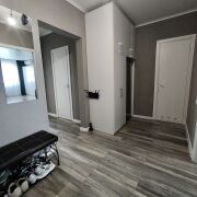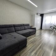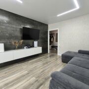 Санузел раздельный, есть лоджия. Окна ПВХ, входная дверь металлическая. Потолки выполнены в снежном цвете, в зале натяжной потолок. Полы — ламинат и плитка, стены комбинированные. В зале сделан хороший дизайнерский ремонт: стены отделаны итальянской плиткой, дубовыми панелями и итальянскими обоями. Установлен качественный бесшумный кондиционер LG. Кухонный гарнитур оснащен фурнитурой Blum и установлены фильтры для очистки воды.