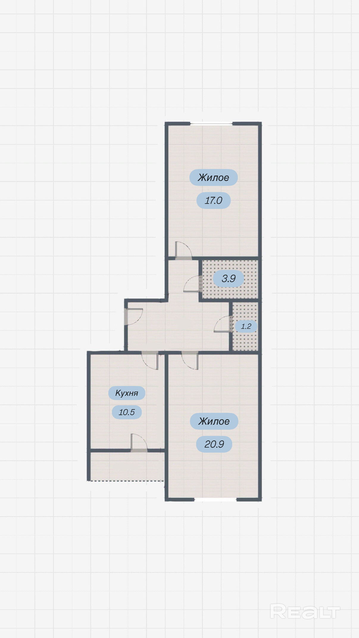 Санузел требует ремонта. Во дворе тихо, есть большая стоянка и современная детская площадка, обновленная месяц назад. В пешей доступности находятся остановки общественного транспорта, школы, детские сады, рынок «Лагуна», аптеки и магазины, а также пляж.