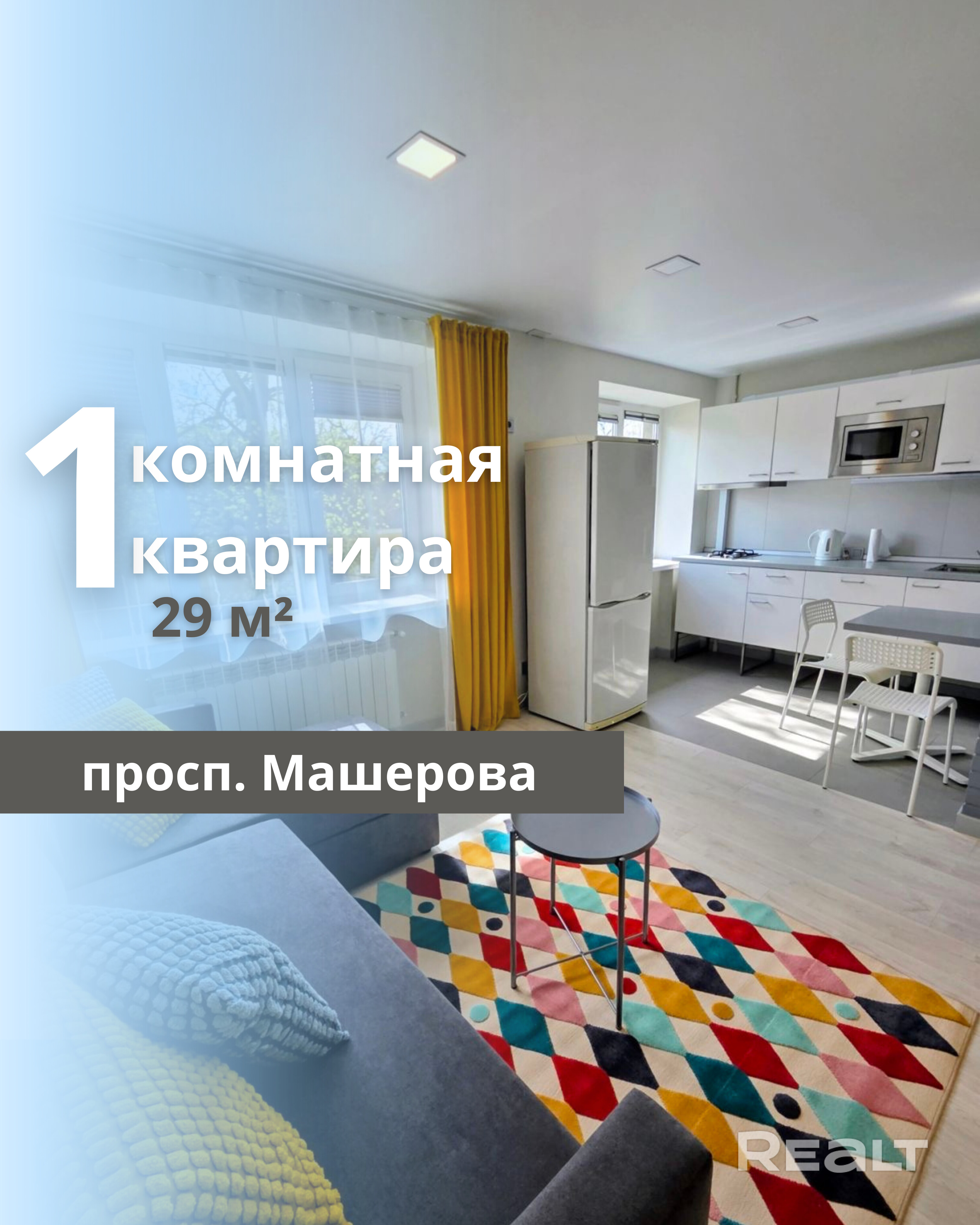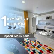 Продается уютная 1-комнатная квартира в центре по улице Машерова, расположенная на 2 этаже 5-этажного кирпичного дома, построенного в 1963 году. Общая площадь квартиры составляет 29 м2, жилая – 17.6 м2, кухня – 4.7 м2. Квартира с дизайнерским ремонтом, светлая и теплая, с улучшенной узаконенной перепланировкой. Проведена полная замена электрики и сантехники. Совмещенный санузел облицован плиткой современного образца. Окна оснащены стеклопакетами, входная дверь металлическая. Полы выполнены из ламината и плитки, потолок натяжной с комбинированным освещением. Окна выходят во двор, что обеспечивает тишину и комфорт